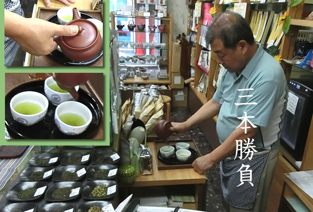 茶葉はおよそ30種類。リニューアルを機に、もとすみの方々のご意見を頂戴しながら、ラインナップを決めています。その中で「浅蒸し」「深蒸し」「普通蒸し」煎茶おすすめ三品をご用意しました。